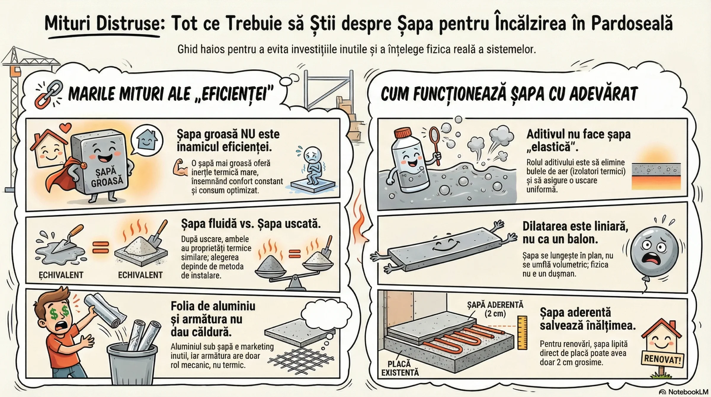 Adevărul fizic, scurt și la obiect, despre șapa pentru încălzirea în pardoseală: