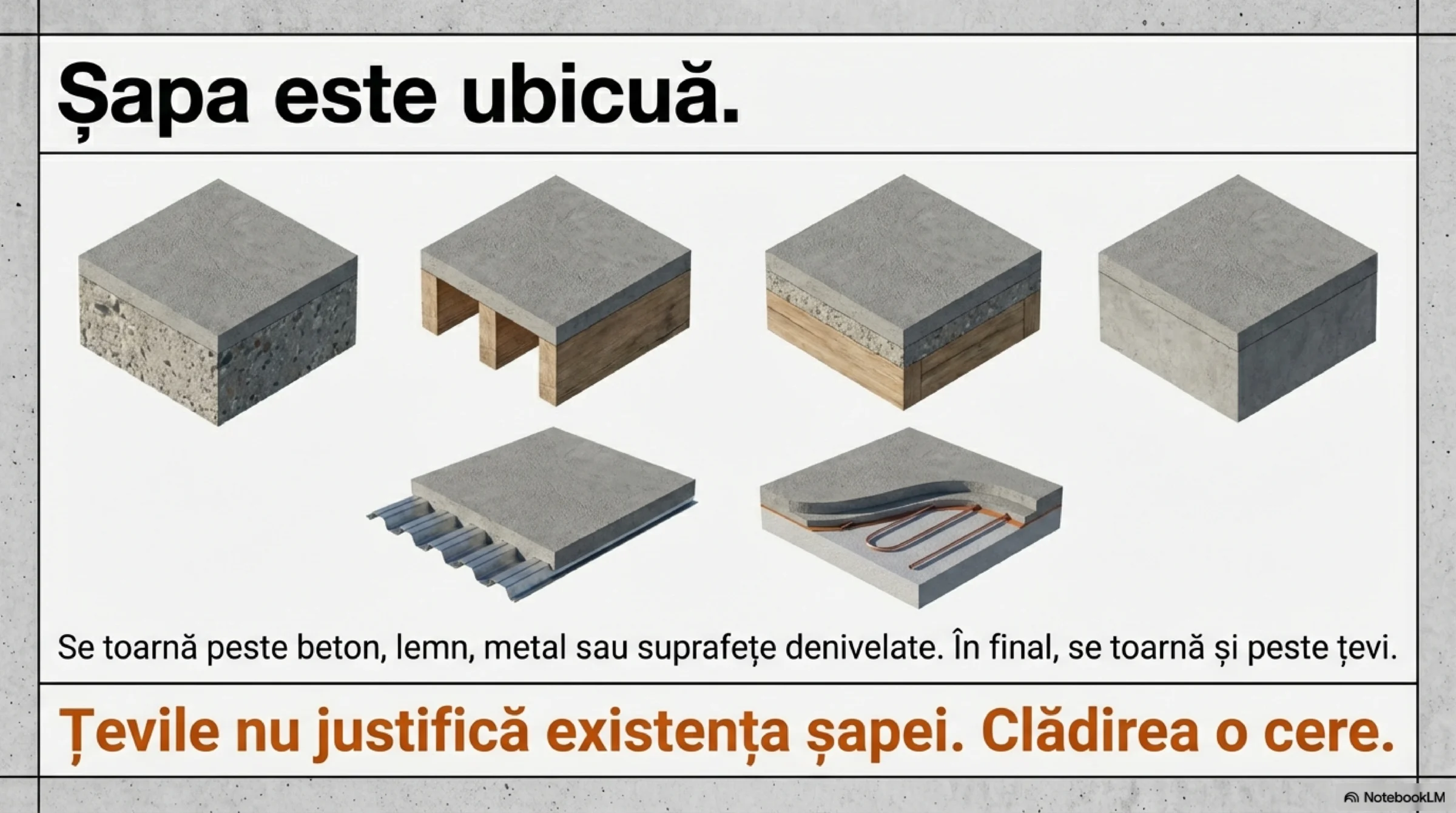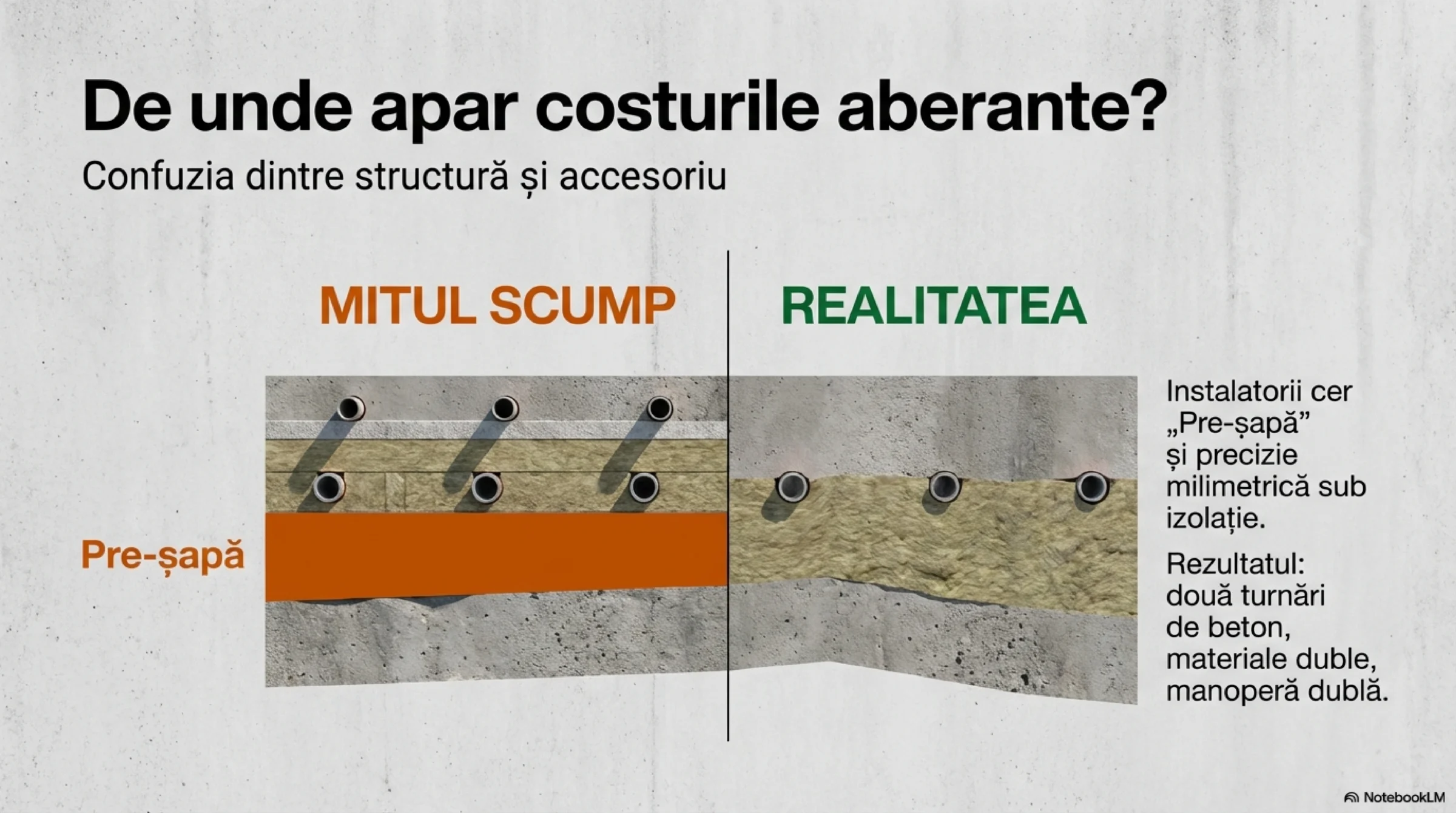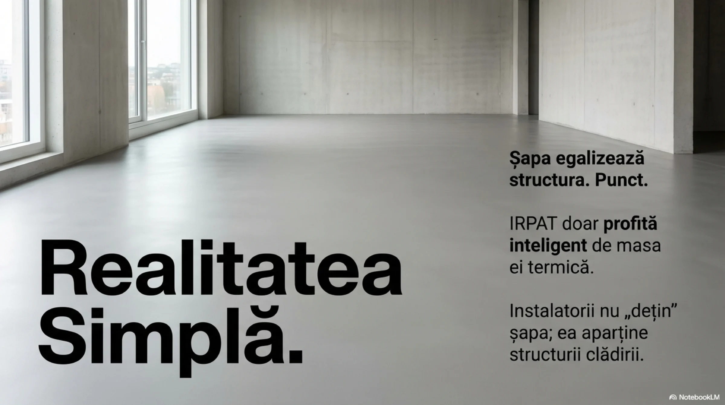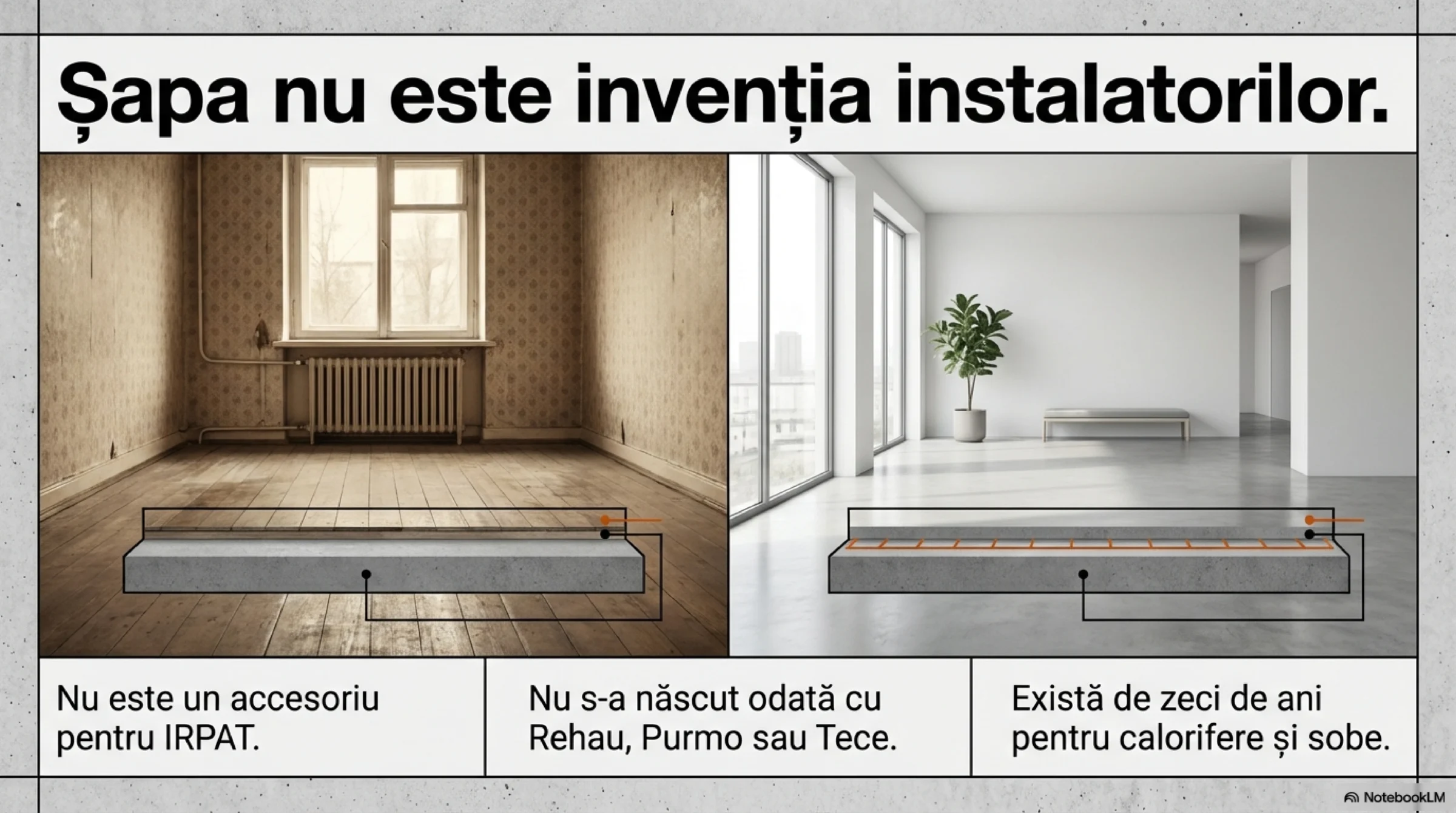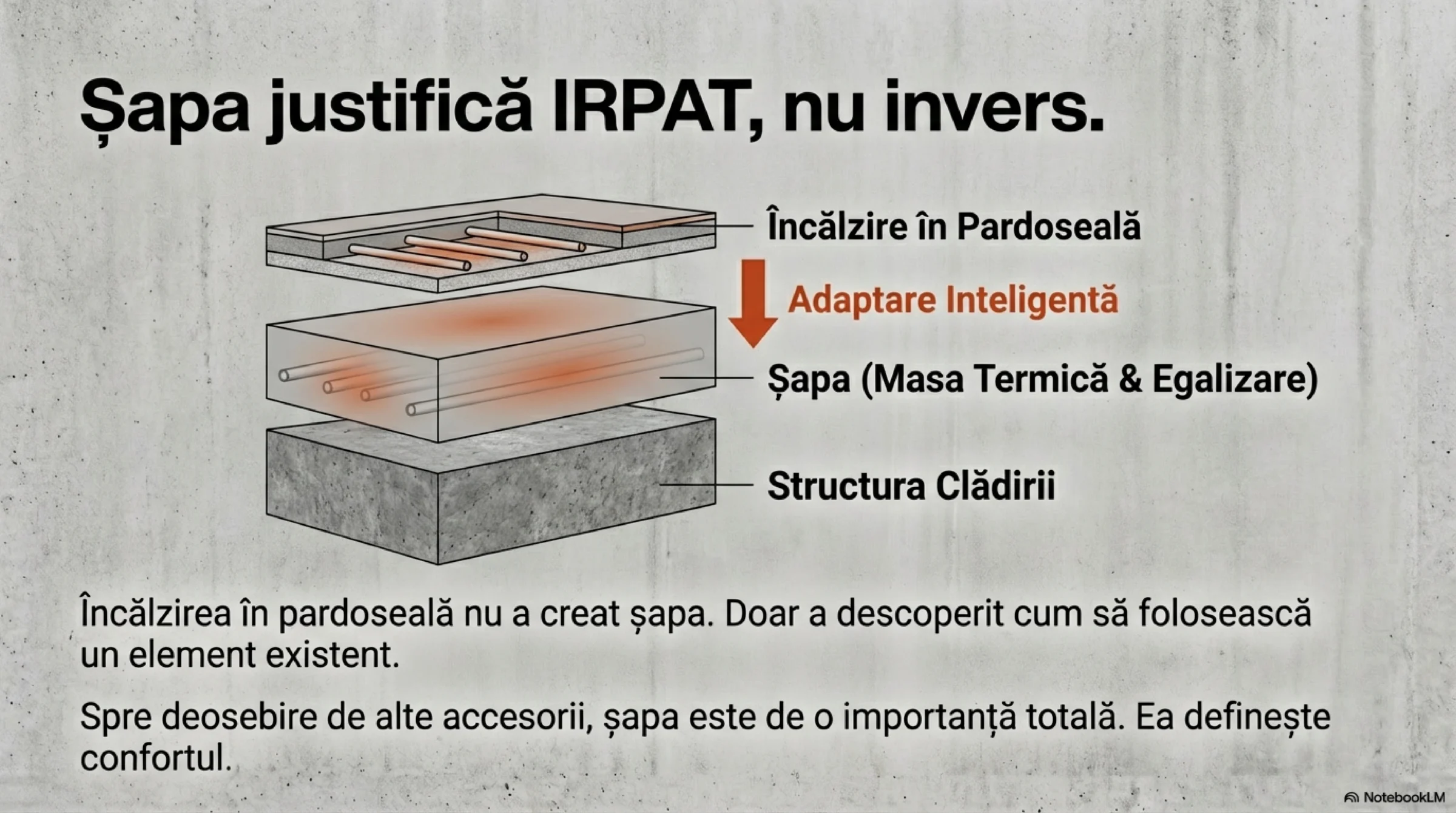 Încălzirea în pardoseală nu a creat șapa. Doar a descoperit că poate folosi inteligent un element structural deja existent.