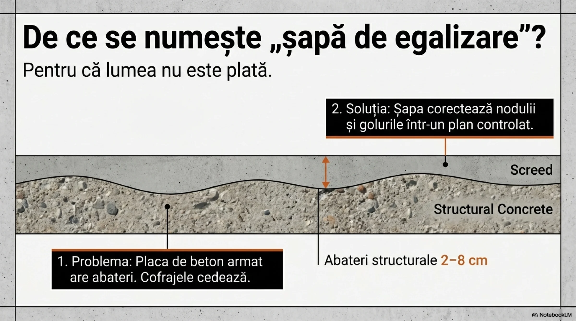 Șapa nu se toarnă doar pentru a corecta defecte majore.