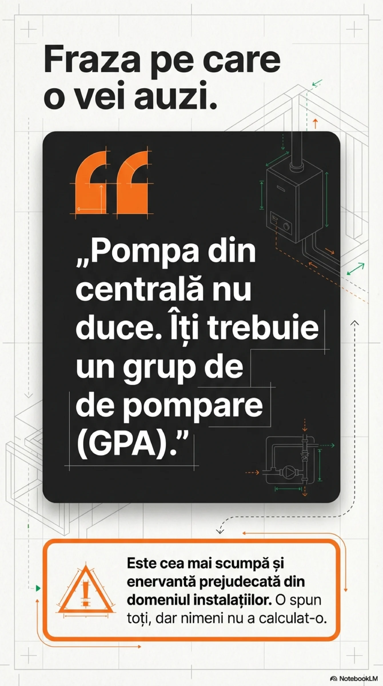 Dacă ai cerut o ofertă pentru IPATIPAT = încălzire în pardoseală cu agent termic; în șapă = sistem umed; fără șapă = sistem... și ți s-a spus că „pompa din centrală/pompa de căldură nu duce, îți trebuie grup de pompare și amestec (GPAGPA = grup de pompare și amestec)”, te afli în fața uneia dintre cele mai răspândite și enervante prejudecăți din domeniu.