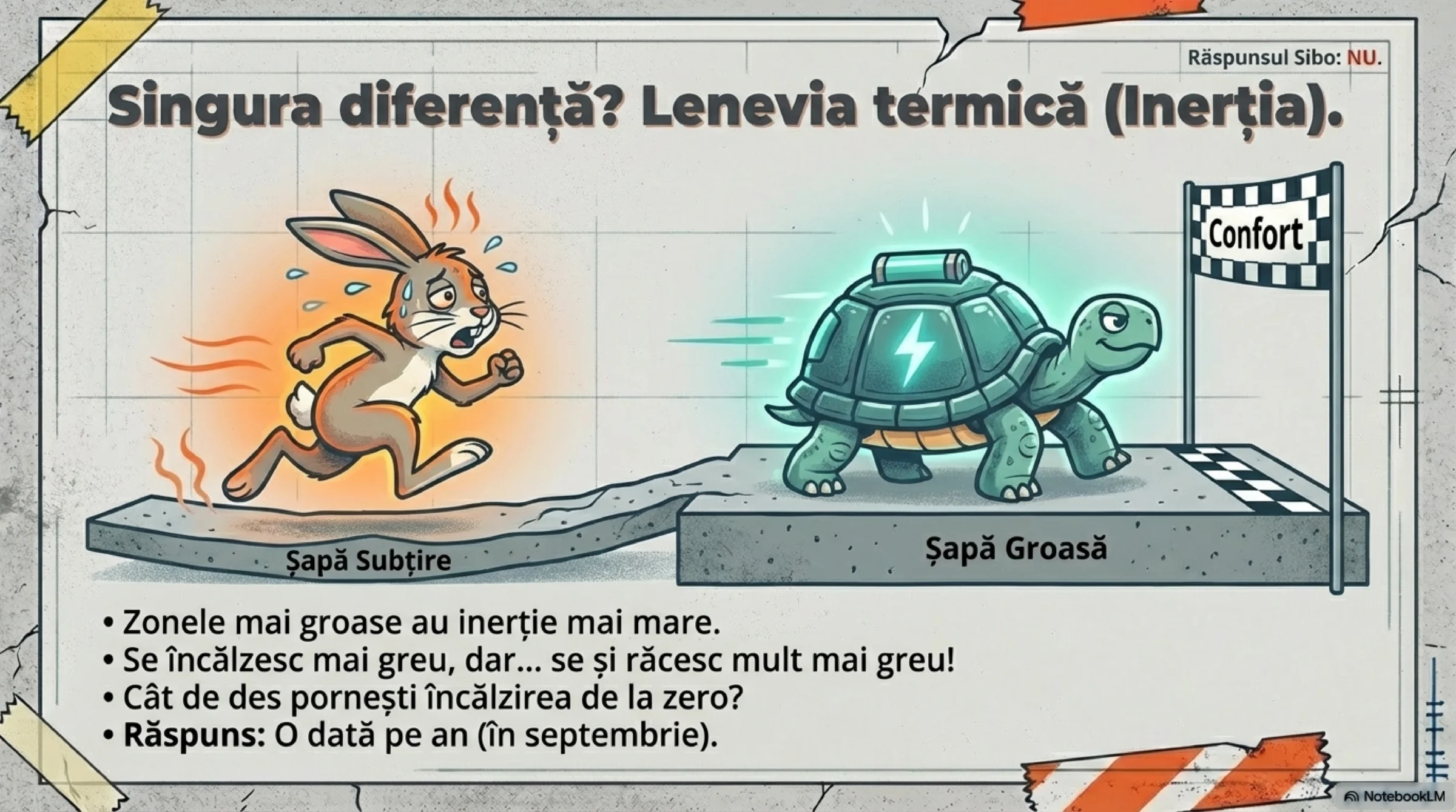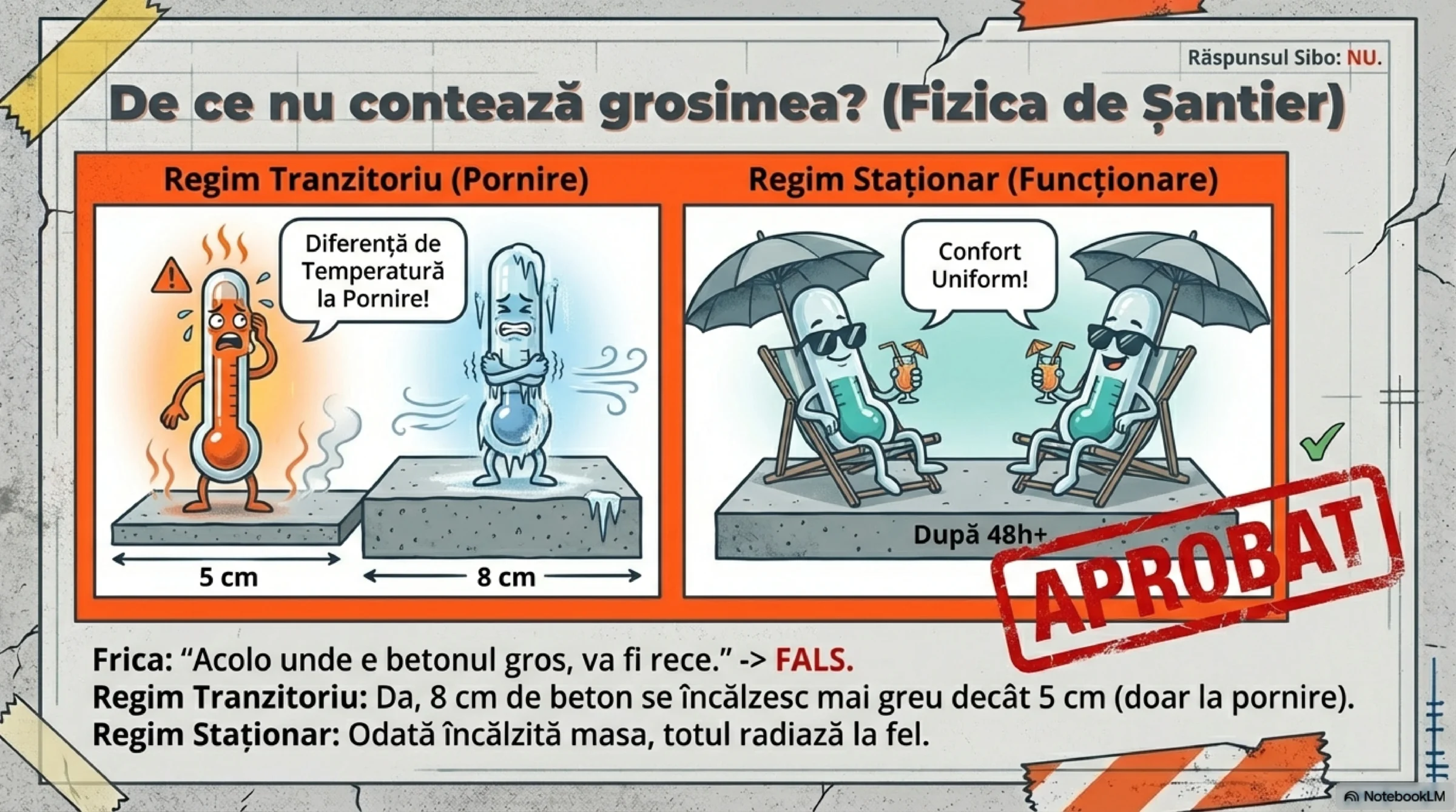 - Fizic, durează un pic mai mult să încălzești 8 cm de beton față de 5 cm.