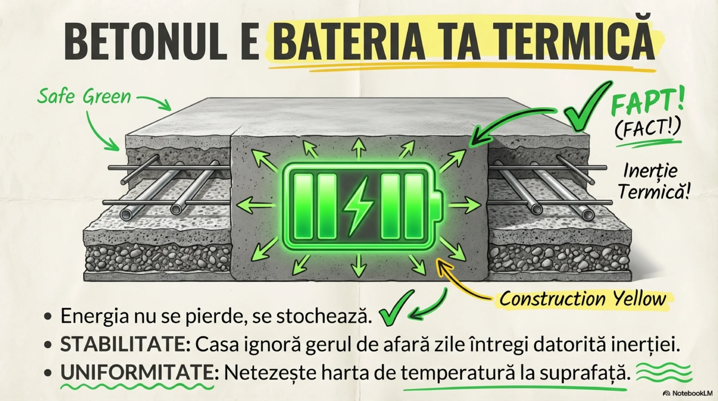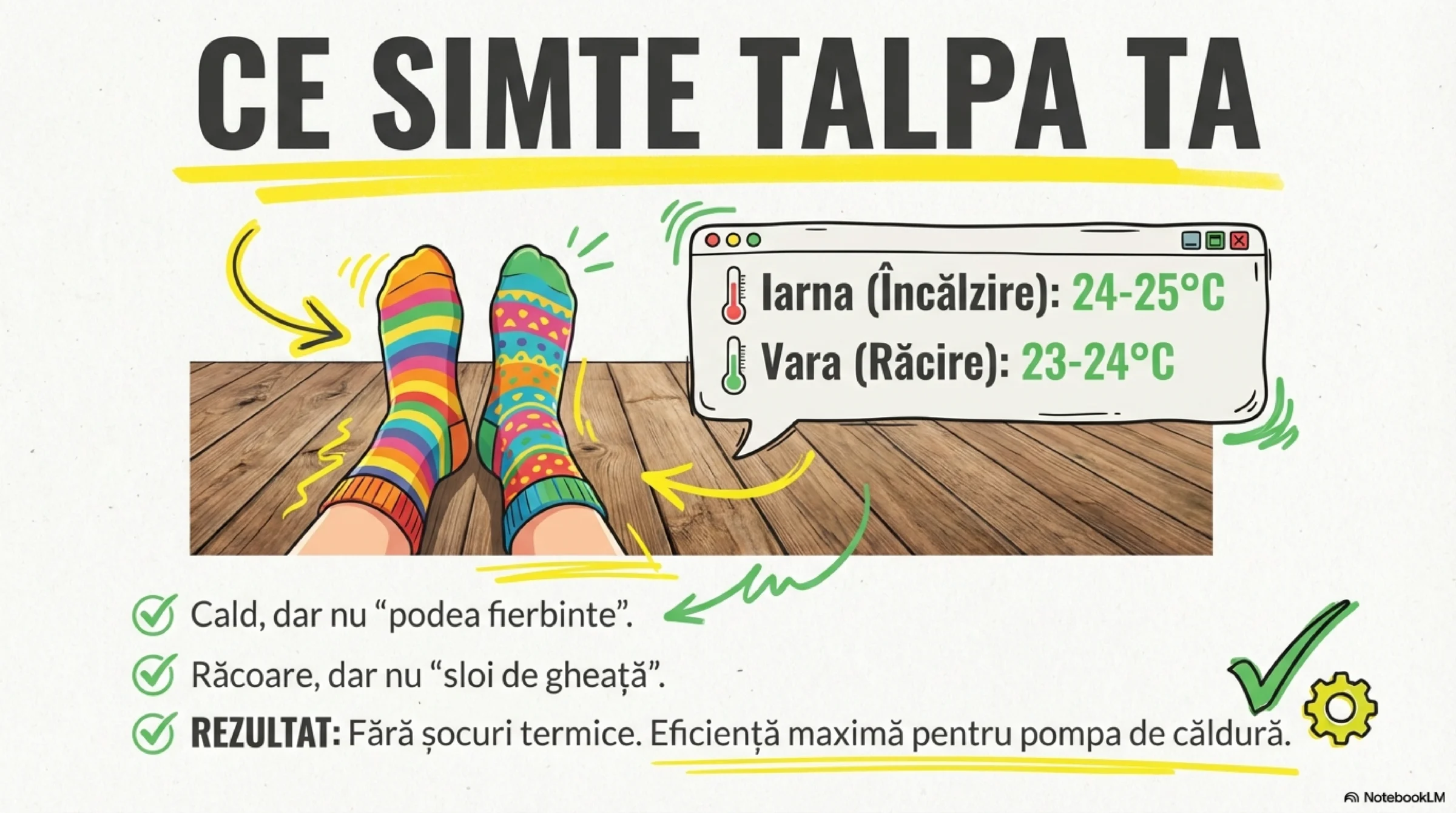 - confort fără senzație de „pardoseală fierbinte”, sau „sloi de gheață” vara