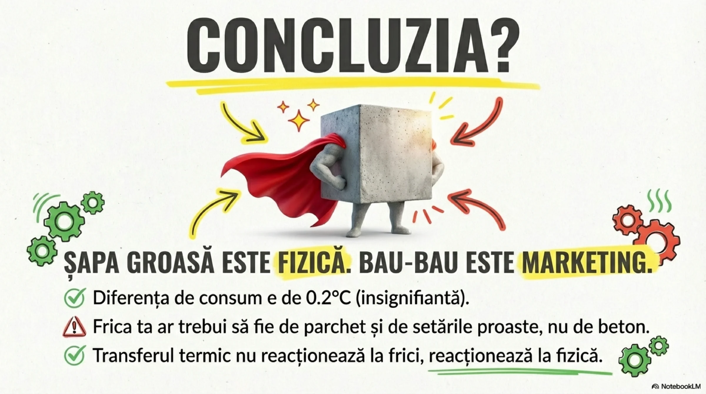La diferențe reale de 0,05–0,2°C pe cm, discuția despre „ineficiență” devine artificială.