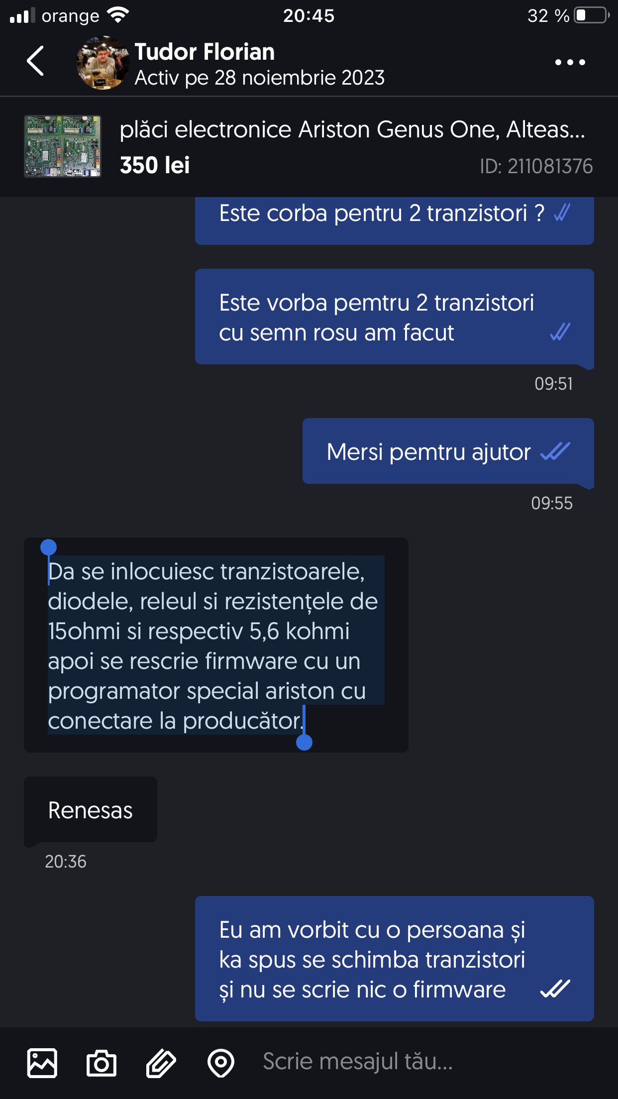 | 238 | Turații pompă: p1 c1 f2. 0 minim, 1 maxim, 2 modulant. Turație mare scade ΔT și uniformizează pardoseala. Consecințe explicate în urzeala temperaturilor. Turația mare permite funcționarea pe regim de joasă temperatură pentru calorifere. Sperăm că viitoarele CTgaz Ariston vor avea ΔT reglabil de la 1°C în sus. |