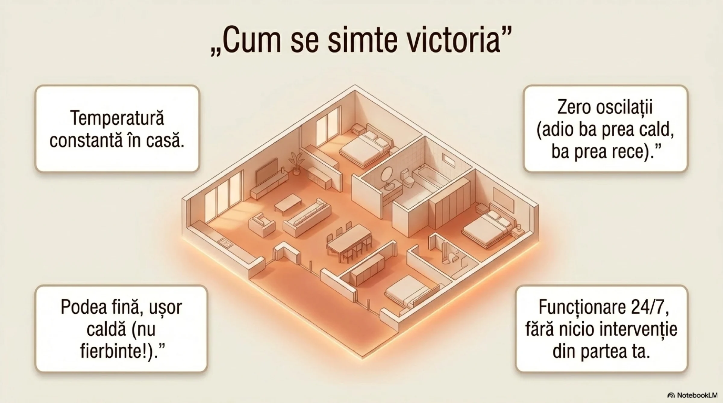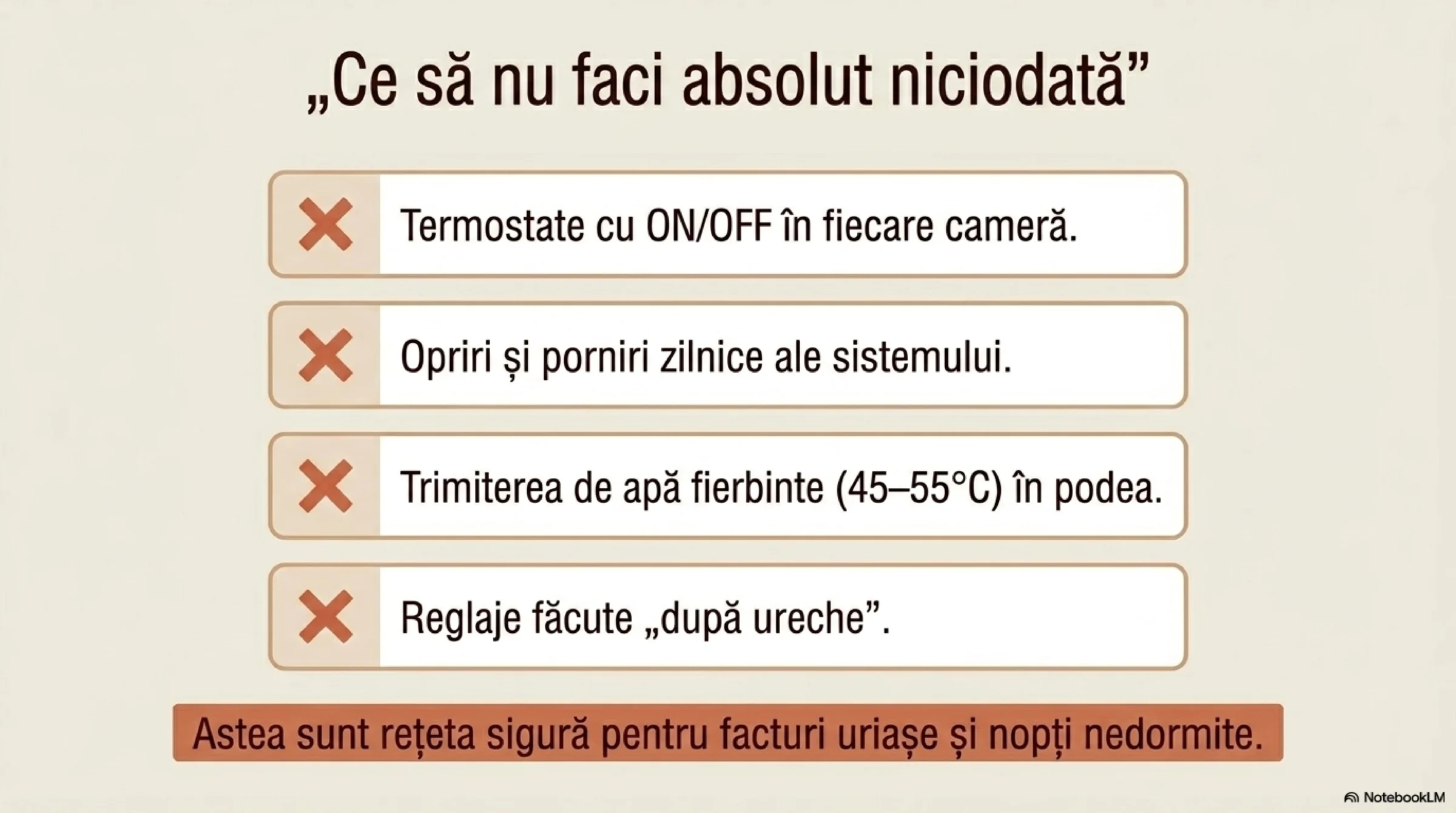 - ❌ termostate ON/OFF în fiecare cameră
