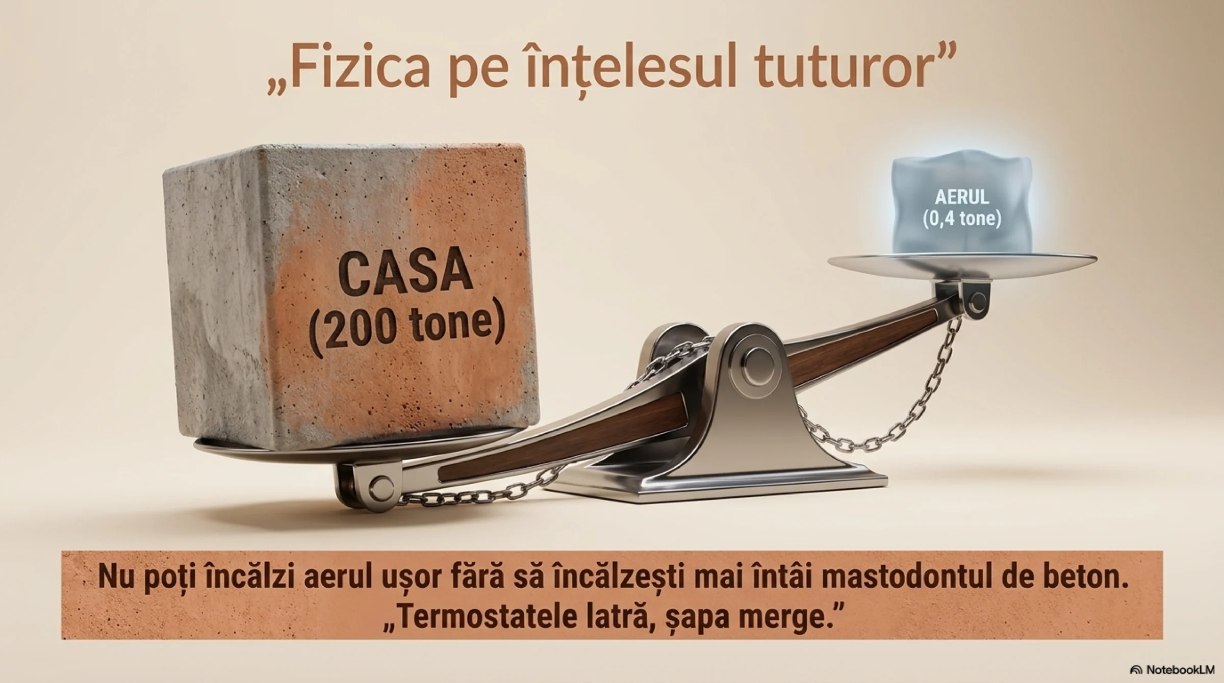 Casa cântărește 200 de tone, aerul din ea doar 0,4 tone. Termostatele latră, șapa merge.